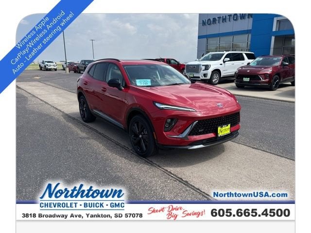 Brilliant Red 2025 Buick Envision Sport Touring AWD 9-Speed Automatic 2.0L Turbocharged This 2025 Buick Envision comes equipped with, Exterior Parking Camera Rear, Heads-Up Display, Leather steering wheel, Navigation System, Power Liftgate, Wheels: 20 Carbon Flash Metallic Alloy, Wireless Apple CarPlay/Wireless Android Auto.