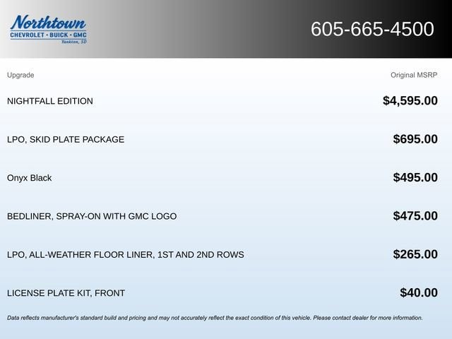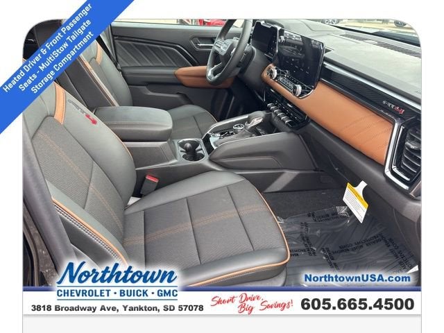 Onyx Black 2025 GMC Canyon AT4 4WD 8-Speed Automatic 2.7L I4 Turbocharged DOHC 16V LEV3-SULEV30 310hp This 2025 GMC Canyon comes equipped with, 4WD, 120-Volt Bed Mounted Power Outlet, 2 Rear USB Ports in Center Console (Charge-Only), 8-Way Power Driver Seat Adjuster, Auto High-beam Headlights, Automatic Emergency Braking, Bed-Mounted Tubular Sport Bar (LPO), Black Badges (LPO), Blind Zone Steering Assist w/Trailering, Canyon Pro Safety, Canyon Safety Plus Package, Driver & Front Passenger Illuminated Visors, Dual-Zone Auto Climate Control Air Conditioning, Electronic Stability Control, EZ-Lift & Lower Tailgate, Following Distance Indicator, Forward Collision Alert, Front LED Fog Lamps, Front Pedestrian & Bicyclist Braking, Heated Driver & Front Passenger Seats, Inside Rear-View Auto-Dimming Mirror, IntelliBeam Automatic High Beam On/Off, Interior Overhead Courtesy Light w/Dual Reading Lamp, Lane Keep Assist w/Lane Departure Warning, MultiStow Tailgate Storage Compartment, Navigation System, Nightfall Edition, Power Driver Lumbar Control Seat Adjuster, Preferred Equipment Group 4SG, Rear Cross Traffic Braking, Rear of Console 120-Volt Power Outlet, Remote Vehicle Starter System, Rocker Panel Protector (LPO), Skid Plate Package (LPO), Tailgate Keyed Cylinder Lock, Tilt & Telescopic Manual Steering Column, Ultrasonic Rear Park Assist, Wheels: 20 x 9 Machined Faced Aluminum.