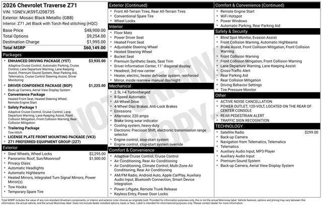 Combining bold styling, exceptional capability, and a wealth of cutting-edge features, the 2026 Chevrolet Traverse Z71 is the ultimate family SUV. Experience the difference for yourself and schedule a test drive today. We're confident you'll be impressed by the Traverse's uncompromising performance and versatility.