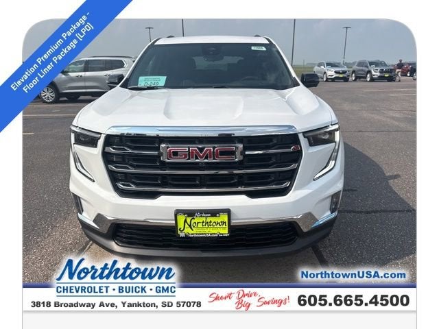 Summit White 2026 GMC Acadia Elevation AWD 8-Speed Automatic 2.5L DOHC This 2026 GMC Acadia comes equipped with, AWD, After Dark Cloth, 1st & 2nd Row All-Weather Floor Liner (LPO), 3-Channel Programmable Universal Home Remote, 3rd Row All-Weather Floor Liner (LPO), 6-Way Power Front Passenger Seat Adjuster, 7-Passenger Seating (2-2-3 Seating Configuration), 8 Diagonal Head-Up Display, Bose Premium 12-Speaker System w/Sub-Woofer, Brake assist, CoreTec Seat Trim, Electronic Stability Control, Elevation Premium Package, Exterior Parking Camera Rear, Floor Liner Package (LPO), Front Passenger Power Lumbar Seat Adjuster, Heated Rear Outboard Seating Positions, Heated Wiper Park, Integrated Cargo Liner (LPO), Laminated Acoustic Glass, Luxury Package, Navigation System, Power Liftgate, Preferred Equipment Group 4SD, Wheels: 20 x 8 Bright Silver Aluminum.