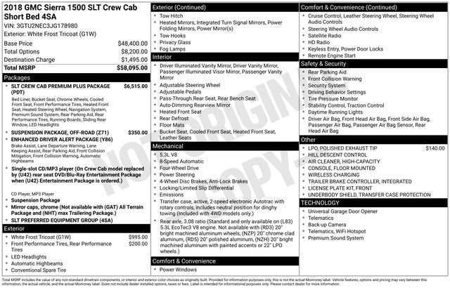 This 2018 GMC Sierra 1500 comes equipped with, 8-Speed Automatic with Overdrive, 4WD, Dark Ash Seats With Jet Black Interior Accents Leather. White Frost Tricoat 15/20 City/Highway MPGGMC Sierra 1500 SLT 4D Crew Cab 4WD 8-Speed Automatic with Overdrive EcoTec3 5.3L V8Come see us at Northtown Automotive in Yankton, SD for a test drive today — Short Drive, Big Savings!