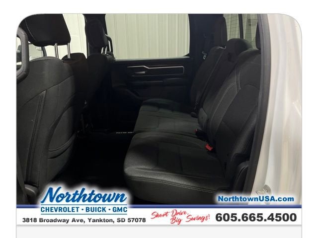 Boasting a spacious and well-appointed interior, this Ram 1500 offers the perfect blend of comfort and capability. The deluxe cloth bucket seats provide exceptional support, while the power-adjustable driver's seat and lumbar support ensure a personalized fit. The rear power sliding window and 60/40 split-folding rear seat further add to the vehicle's versatility, making it ideal for both work and play.