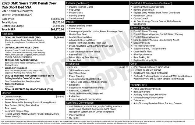 This 2020 GMC Sierra 1500 comes equipped with, 10-Speed Automatic, 4WD, Jet Black Leather. Onyx Black 15/20 City/Highway MPG