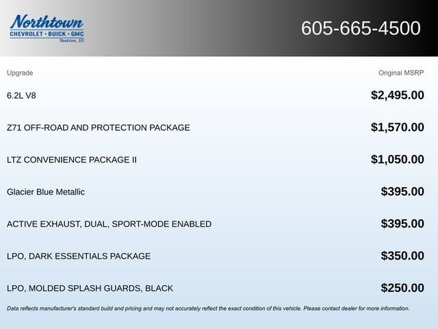This 2024 Chevrolet Silverado 1500 comes equipped with, 10-Speed Automatic, 4WD, Gideon/Very Dark Atmosphere Leather. Glacier Blue Metallic 15/20 City/Highway MPGChevrolet Silverado 1500 LTZ 4D Crew Cab 4WD 10-Speed Automatic EcoTec3 6.2L V8Come see us at Northtown Automotive in Yankton, SD for a test drive today — Short Drive, Big Savings!