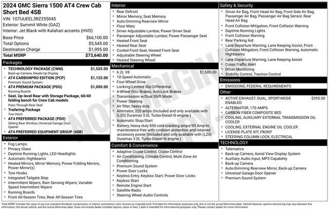 This 2024 GMC Sierra 1500 AT4 in Summit White is a fully loaded CarbonPro Edition with rugged capability and premium comfort. It features 4WD, the 6.2L V8, and a 10-speed automatic for strong performance on and off the road.